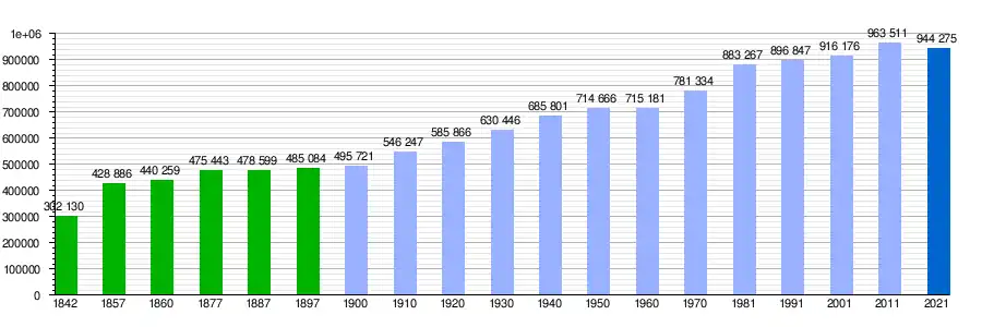 | Gráfica de evolución demográfica de la provincia de Pontevedra entre 1842 y 2021 |
