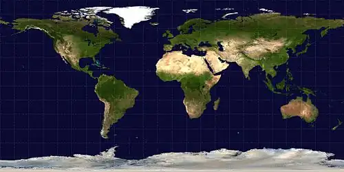 Proyección cilíndrica equidistante, también conocida como proyección geográfica, proyección paralelogramática, y que incluye el caso especial de la proyección de la plate carrée o proyección geográfica, conocida más generalmente por proyección equirrectangular, es una proyección geográfica cilíndrica muy simple, cuya invención se atribuye a Marino de Tiro en torno al año 100 d. C., pues Claudio Ptolomeo así lo dice en su obra Geografía.[1] También se puede llamar proyección latitud-longitud.