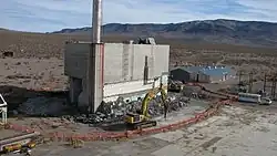 - ↑ Kruzic, Michael R. (1 de junio de 2008). Nuclear Rocket Facility Decommissioning Project: Controlled Explosive Demolition of Neutron-Activated Shield Wall (en inglés) (DOE/NV/25946-350). National Security Technologies, LLC (NSTec), Mercury, NV (United States). Consultado el 10 de septiembre de 2024.