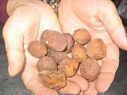 El fruto es muy parecido al melocotón o durazno, o las variedades de ciruela amarillas; pero no debe confundirse con aquellos.
