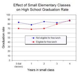 En un experimento realizado en Estados Unidos de demostró que la asistencia a clases de grupos pequeños durante 3 o más años en los primeros cursos incrementaba el número de graduados en secundaria en los estudiantes de familias con bajos ingresos económicos.[46]
