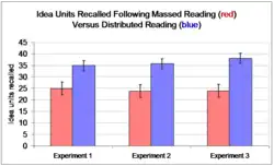 Tres experimentos divulgados por Drug, Davis y Glover[24]​ demostraron las ventajas que tiene retrazar una semana la relectura de un pasaje de un texto (distribuida) respecto a releer el texto inmediatamente.