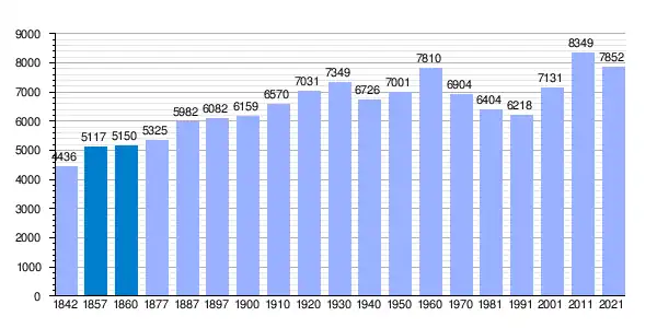 | Gráfica de evolución demográfica de La Puebla de Montalbán[3] entre 1842 y 2021 |