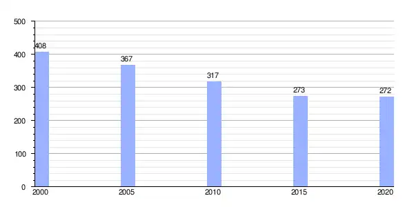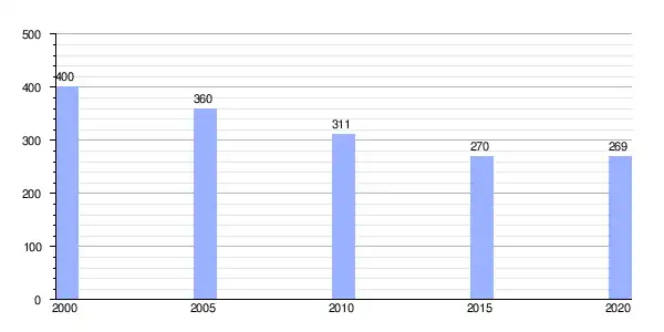 | Gráfica de evolución demográfica de Puebla de Navia (parroquia) entre 2000 y 2020 |