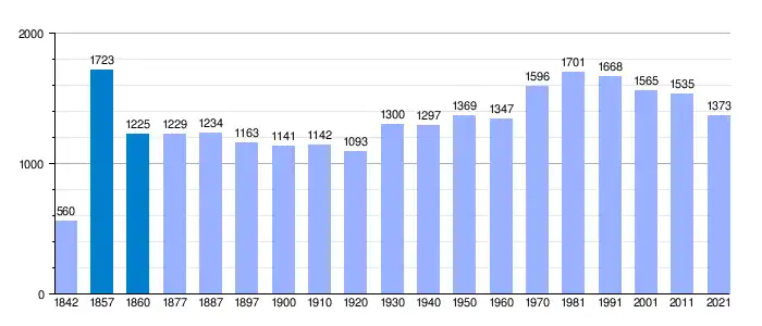 | Gráfica de evolución demográfica de Puebla de Sanabria[31] entre 1842 y 2021 |