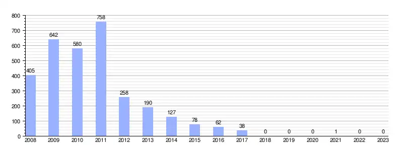 | Gráfica de evolución de la deuda viva del Ayuntamiento entre 2008 y 2023 |