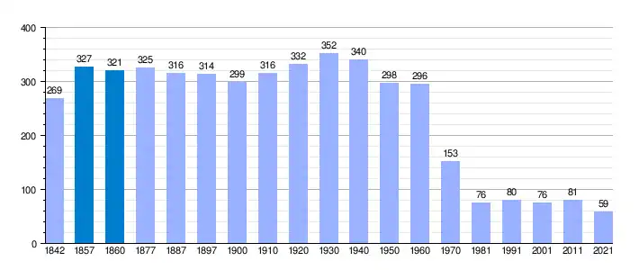 | Gráfica de evolución demográfica de Puebla de Valles[4] entre 1842 y 2021 |