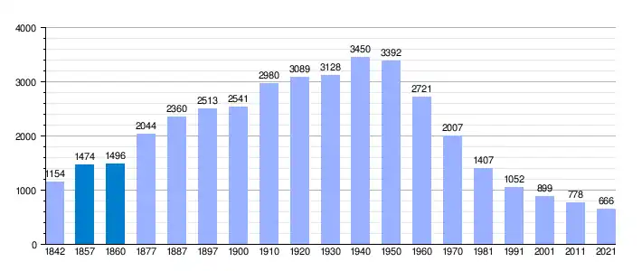 | Gráfica de evolución demográfica de Puebla del Maestre[11] entre 1842 y 2021 |