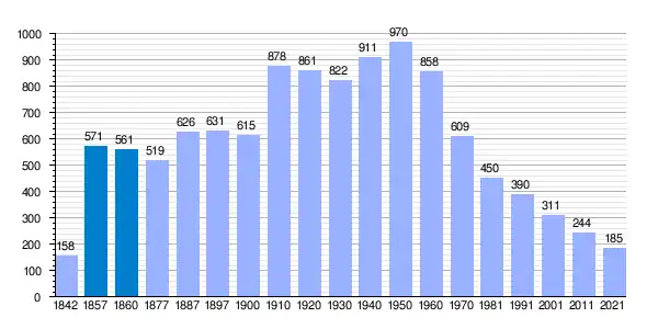 Población de derecho según los censos de población del INE Población de hecho según los censos de población del INEEntre el censo de 1857 y el anterior, crece el término del municipio porque incorpora a 495016 (Bercianos de Valverde)[11] |