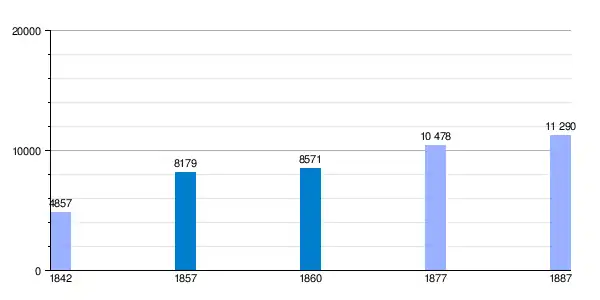 | Gráfica de evolución demográfica de Pueblo Nuevo del Mar[5] entre 1842 y 1887 |