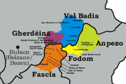 - ↑ a b Christoph Perathoner: Die Dolomitenladiner 1848-1918: ethnisches Bewusstsein und politische Partizipation. Folio, Bozen/Wien 1998, ISBN 978-3852560809.