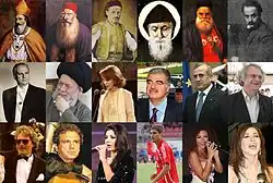 Arriba: Eztebe El Douaihy·Bashir Shihab II.a·Youssef Bey Karam·Charbel·Elias Hoayek·Gibran Khalil Gibran·Camille Chamoun·Mohammad Hussein Fadlallah·Fairuz·Rafic Hariri·Michel Suleiman·Amin Maalouf·Mario Kassar·Rabih Abou-Khalil·Haifa Wehbe·Youssef Mohamad·Myriam Fares·Nancy Ajram. Abajo: Distribución. ![]() | ||