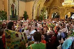 Los rusos son predominantemente de fe cristiana ortodoxa. Según el Centro de Investigaciones Sociológicas de la Universidad Estatal de Lomonósov Moscú, el 43,3% de los adultos se considera adherente de la Iglesia Ortodoxa Rusa, mientras el 50,6% se considera sencillamente cristiano.[19] Aunque los rusos no religiosos se asocian en su mayoría con la fe ortodoxa por razones culturales. Algunos rusos son viejos creyentes, grupo cismático relativamente pequeño de la ortodoxia rusa que rechazaba las reformas litúrgicas introducidas en el siglo XVII, la Reforma de Nikon.