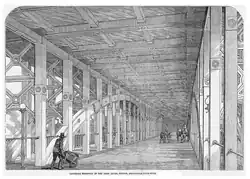 Las nervaduras del arco se erigieron en secciones mediante una grúa móvil; cada arco se montó preliminarmente en los talleres del contratista.[11] El primero se colocó el 10 de julio de 1848, y el montaje de los herrajes fue muy rápido.