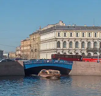 El Puente Azul es el puente más ancho de San Petersburgo.