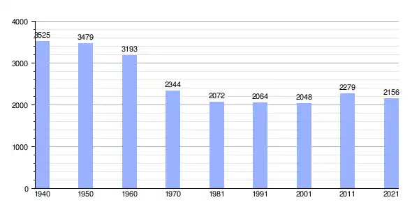 | Gráfica de evolución demográfica de Puente de Génave[5] entre 1940 y 2021 |