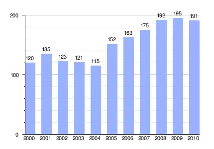 Población de derecho (2000-2010) según los censos de población del INE a 1 de enero de cada año.[1] |