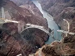 - ↑ a b Hansen, Kyle B. (1 de agosto de 2009). «Hoover Dam bypass bridge inches toward completion». Consultado el 11 de mayo de 2012.