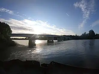 El puente conecta, específicamente, en el cruce del sector de Santa Elvira y en el otro extremo a la ruta T-35 (Valdivia-Antilhue-Los Lagos). También permite conectar la salida norte (ruta T-202, Valdivia-Mariquina), a través de Circunvalación y Picarte, con la salida sur (ruta T-206, Valdivia-Paillaco).[2]