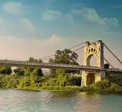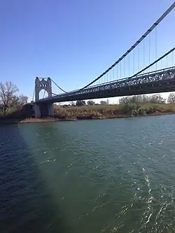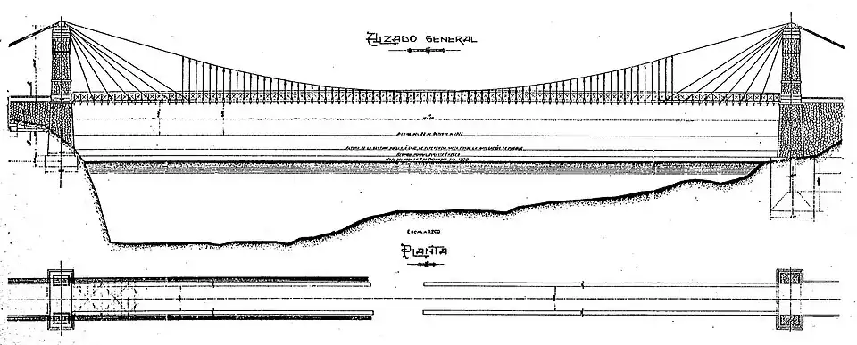 Fue el segundo puente colgante del mundo construido con el sistema de hormigón armado, después del puente de Brooklyn de Nueva York, en el que está inspirado.