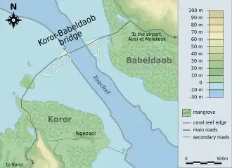 | Cruza | Koror y Babeldaob | |