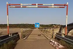 Las vallas de protección en la plataforma son tubo de fontanería con malla de simple torsión para proteger espacios donde cabe una persona.[8] Incluso hoy día posee cuerdas de rafia como protección colocadas por vecinos de las localidades adyacentes debido a su falta de mantenimiento público. Un arco metálico para el control de gálibo impedía el acceso de vehículos pesados debido a que el puente resultaba todavía más peligroso en su tránsito con vehículos de este tipo.[8]