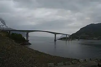 El puente mide 840 m y fue abierto en 1994 con un costo de 203 millones de coronas noruegas. El tramo más largo mide 184 metros y tiene una altura de 35 m.[1]