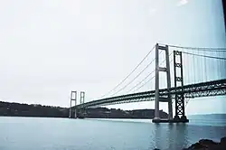 ![]() Las dos estructuras paralelas del puente de Tacoma Narrows en la actualidad. | ||