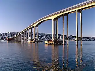 - ↑ «Tromsø har fått Nord-Europas lengste bru» (en norwegian). 4 de julio de 1960. p. 2.