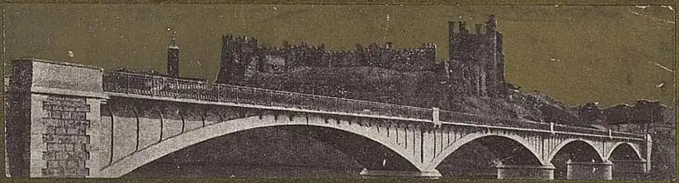 Puente de Valencia de Don Juan según dibujo del catálogo de José Eugenio Ribera.[1] | ||
