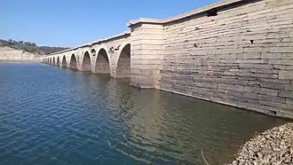 ![]() Viejo puente de la Estrella al descubierto tras bajar la cota del embalse de Ricobayo en 2018 | |||||
