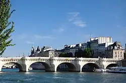 El puente se convierte en un elemento central de los grandes proyectos de urbanismo. En Francia, los primeros arquitectos de renombre aparecen, como Androuet du Cerceau a quien se debe el Pont Neuf[36]​ de París, que comenzó en 1578 y que no fue terminado hasta 1604 debido a las guerras de religión.[37]​ Facilita el paso entre el Palacio del Louvre y la Abadía de Saint-Germain-des-Prés, junto al monumento erigido en honor de Enrique IV situado en el extremo aguas abajo de la île de la Cité y es el puente es el servicio más antiguo de París. Fue en ese momento el puente que introdujo el arco carpanel, una curva con tres o más centros, que nunca sustituyó la curva semicircular.