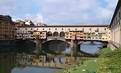 La Edad Media también se caracterizó por la construcción de numerosos puentes de madera, a menudo coronados por edificios en los que se habilitaron comercios, que constituiran el tipo de puente habitado. Uno de los más famosos es el Ponte Vecchio en el río Arno, en la ciudad de Florencia, en Italia. Primero construido en madera, fue reconstruido en piedra en 1345 por Taddeo Gaddi o Neri di Fioravante, según las fuentes, pero la famosa galería erigida por encima de las tiendas no será construida hasta el siglo XVI.[P2 9]