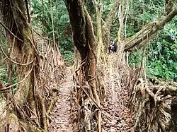 ![]() Puente de raíces vivas doble en East Khasi Hills | ||