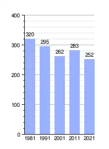 | Gráfica de evolución demográfica de Puente la Reina de Jaca[4] entre 1981 y 2021 |