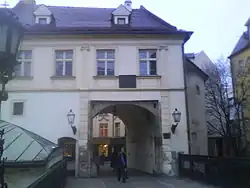 En la época medieval, la ciudad estaba rodeada de murallas, y sólo se podía entrar y salir por una de las cuatro puertas fuertemente fortificadas. En el lado este de la ciudad, era la Puerta de Laurinc, llamada así por San Lorenzo, en el sur era la Puerta de los Pescadores (Rybná brána, Fischertor, Halász kapu). Era la puerta más pequeña de las cuatro, utilizada principalmente por los pescadores que entraban en la ciudad con el pescado capturado en el río Danubio. En el lado oeste estaba la Puerta Vydrica (Vydrická brána, Weidritzer Tor, Vödric kapu), también llamada la Puerta Oscura o la Puerta Negra, ya que era como un túnel - oscuro y largo. En el norte, estaba la Puerta de San Miguel, que llevaba el nombre de San Miguel y la iglesia de San Miguel que se encontraba frente a ella (fuera de la muralla de la ciudad). Más tarde fue derribada y los materiales que se obtuvieron de ella se utilizaron en la construcción de otras murallas de la ciudad.