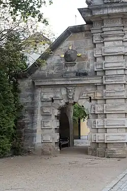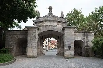 La puerta de Núremberg, construida en 1698, es la única de las cuatro puertas de la muralla renovada que se conserva en la actualidad. La representativa estructura está inspirada en el diseño de la puerta principal de la fortaleza de Rosenberg (1662), en Kronach, incluyendo el friso triangular con las figuras de dos leones sosteniendo el escudo de armas del príncipe-obispo Lothar Franz von Schönborn.[6] Las cabezas de tres bestias están representadas directamente encima de las tres aberturas —la principal y las laterales (más pequeñas)—. Dos pequeños pasillos laterales flanquean la puerta, actualmente cubiertos de vegetación.[3]