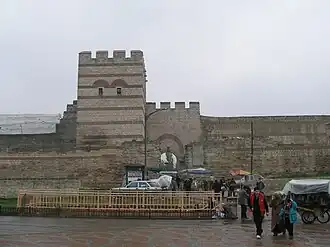 La puerta sufrió una severa devastación durante el asedio de Constantinopla en 1453, durante el cual se derrumbó una de las torres de la entrada más interna.[2][3] Este fue probablemente el lugar donde murió el último emperador bizantino, Constantino XI Paleólogo, durante el asedio, comprometido en la defensa de lo que se consideraba el punto más débil de las defensas de la ciudad.[4][5] Además, faltaban muchas de las almenas de los muros y los muros transversales que encierran los períbolos también estaban mal conservados. La puerta se vio afectada por los trabajos de restauración realizados desde 2005 por el gobierno turco para toda la arquitectura del período bizantino de Estambul.