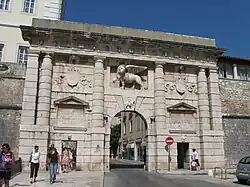 Es considerado el monumento renacentista más bello de Zadar. La puerta, con columnas de orden dorico, divide el centro histórico de la gran fortaleza exterior. Sobre el arco central, en el exterior, es visible San Crisógono a caballo y, en el interior, el león de San Marcos, dañado por manifestantes yugoslavos durante la Cuestión Adriática y recientemente restaurado gracias a las financiaciones de la Región del Véneto (Ley Beggiato).