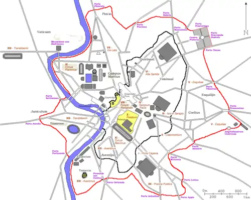 - Porta Aurelia, después rebautizada Porta San Pancrazio, comprendida en la muralla janiculense.
