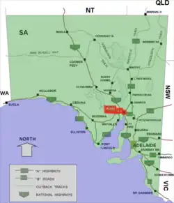 | Coordenadas | 32°29′33″S 137°45′57″E / -32.4925, 137.765833 | |