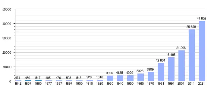 Gráfica de evolución demográfica de Puerto del Rosario[21]​ entre 1842 y 2021