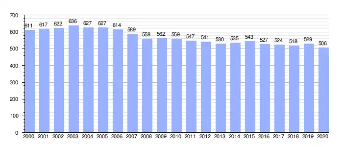| Gráfica de evolución demográfica de Puerto del Barquero[8] entre 2000 y 2020 |