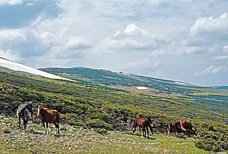 ![]() Yeguas junto al puerto del Reventón en la vertiente madrileña de la sierra | ||