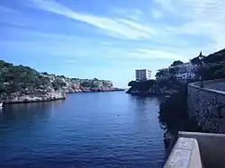 Navegando entre estos puertos se recorren 3,5 millas frente a unos acantilados de unos 30 m de altura, que siguen un contorno muy recortado con abundantes cuevas y oquedades. Tan solo se interrumpe esta naturaleza de costa al llegar a cala Mondragón donde se encuentran las dos amplias playas de 140 m de s'Amarador y caló de'n Garrot de 65m, de fina y blanca arena. En caló d'es Bullit y más tarde de es Macs, paraje de la Barca Trencada, se encuentran dos minúsculas playas al fondo de las caletas.
