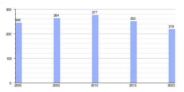 | Gráfica de evolución demográfica de Puga (parroquia) entre 2000 y 2023 |