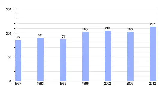 | Gráfica de evolución demográfica de Pukarua entre 1977 y 2012 |