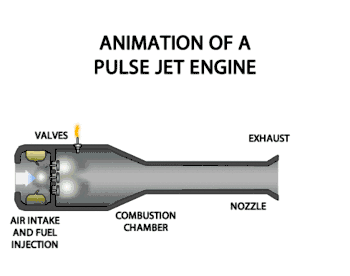 - Acto seguido se inicia la inyección del combustible y se procede a quemarlo mediante la bujía de encendido. En ese momento se produce una explosión que hace que el aire dentro del reactor empiece a expandirse rápidamente por toda la U produciendo así el empuje del reactor, pero el recorrido del aire en las dos direcciones es desigual en distancias lo que provoca que en el momento en el cual la explosión da lugar al vacío parte de los gases calientes que han tenido que atravesar el camino más largo por el arco de la U retornen a la cámara de combustión mientras el lado de la cámara de combustión absorbe aire fresco del exterior, obteniendo así el retorno de una parte del gas caliente de la explosión inicial, lo cual provoca la siguiente explosión en la cámara de combustión, y finalmente de esta manera la combustión se convierte en autosostenida sin falta alguna de válvulas, ni de continuos chispazos de la bujía.