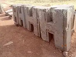 - ↑ a b c d e Protzen, Jean-Pierre; Nair, Stella (31 de diciembre de 2013). «The Stones of Tiahuanaco: A Study of Architecture and Construction». Cotsen Institute of Archaeology Press at UCLA (en inglés). doi:10.2307/j.ctvdmwwsq. Consultado el 19 de enero de 2025.