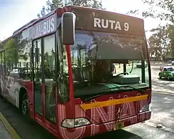Pumabús de la ruta 9 frente a la parada "Camino verde" en la División de Ciencias Básicas de la Facultad de Ingeniería. | ||